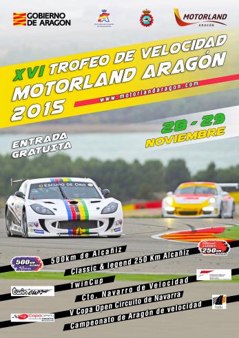MotorLand será escenario del cierre de la temporada automovilística en los circuitos, con la disputa el domingo 29 de noviembre de 2015 del XVI Trofeo de Velocidad, que cuenta con 9 pilotos inscritos. La cita es puntuable para el Campeonato navarro de Velocidad.